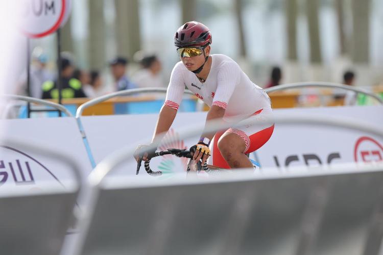 歷經(jīng)5小時17分05秒的激烈追逐,山東隊19歲小將劉志城以領(lǐng)先約半個身位的微弱優(yōu)勢,為山東自行車隊再添一金。